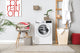 Family fun with the dog children and laundry appliance